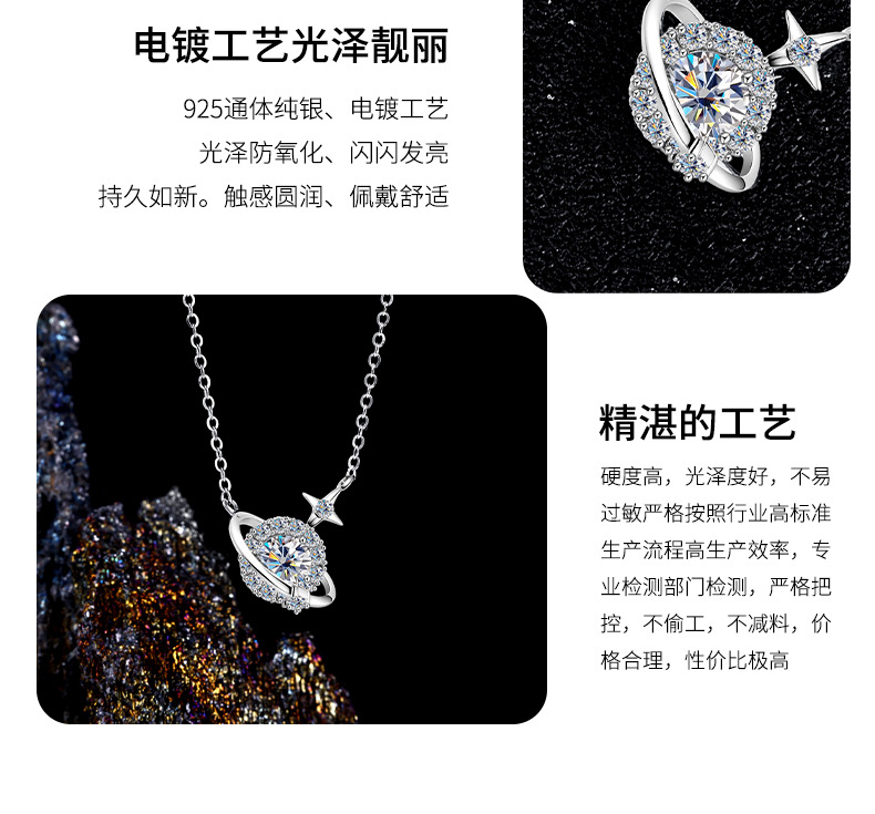 Zhuoheng Select S925 Silver Necklace, Dreamy And Elegant Moissanite Collarbone Chain, Fashionable Accessory, High-End Design Sense Pendant