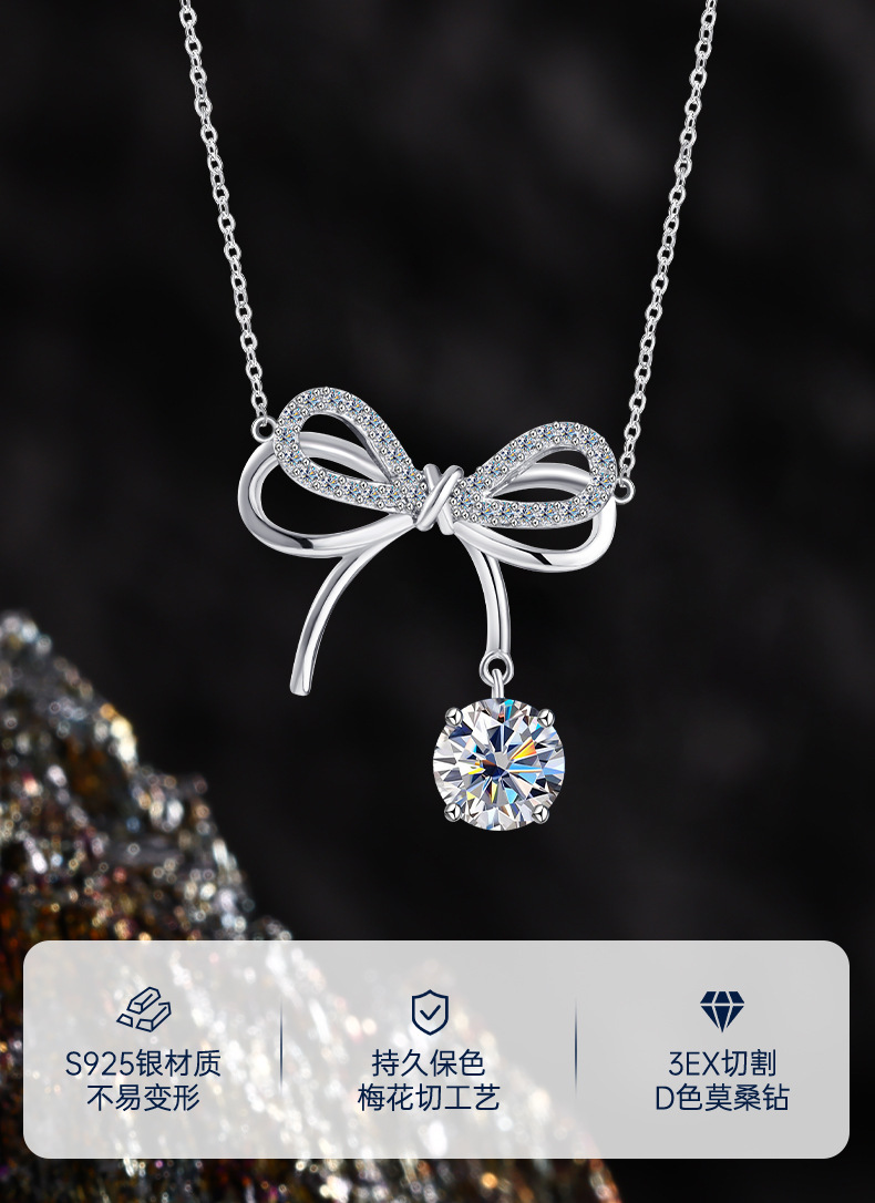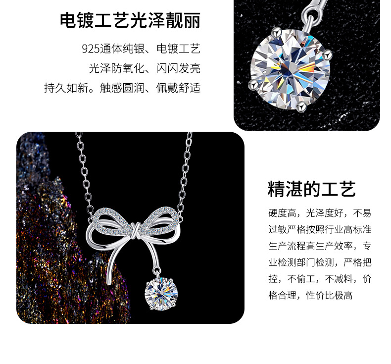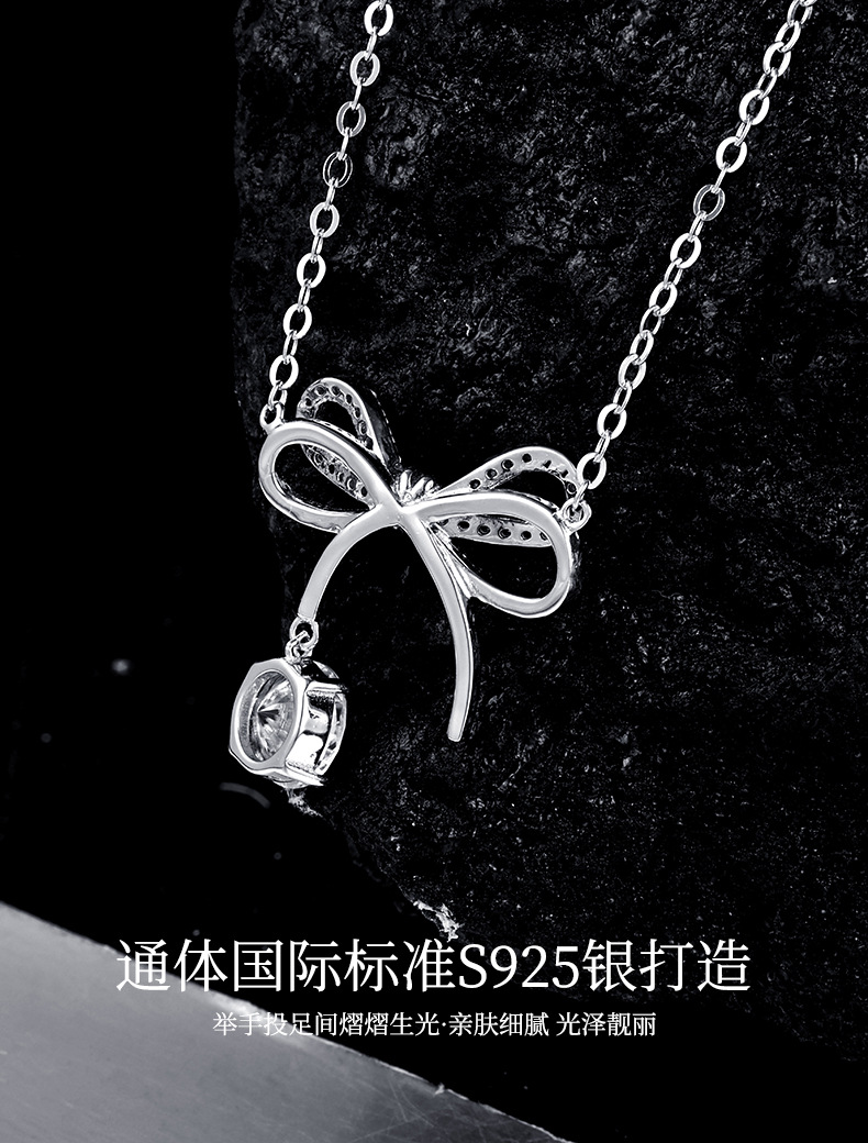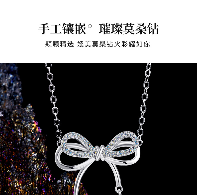 Zhuoheng Selects A Niche Design Of Pure Silver Bow Mosan Pendant Necklace, Which Is Versatile For Women's Ins Style, Fresh And High-End Collarbone Chain