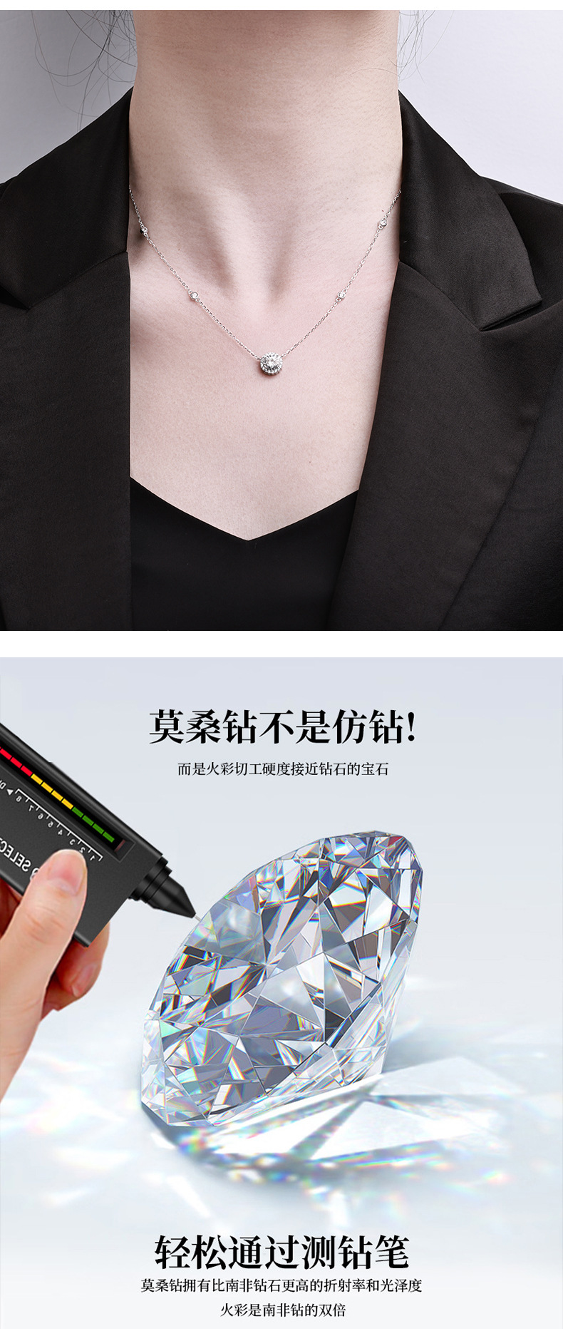 Zhuoheng Selects The Super Shiny Moissang Pure Silver Necklace, A New Pendant With A Light Luxury And Niche Design Sense For Women. A Birthday And Valentine's Day Gift For Your Girlfriend